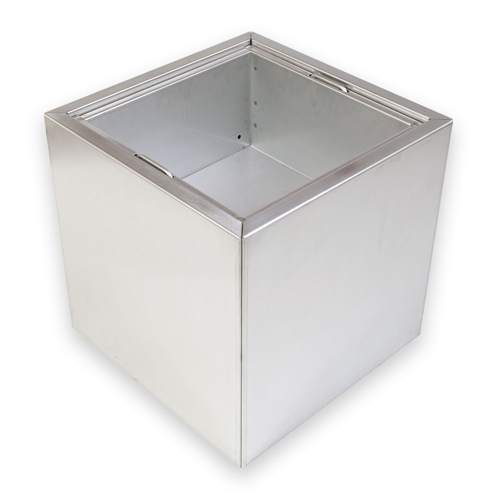 Pflanzkasten inklusive 200 mm hohem Pflanztrog, mit versenkbaren Griffen. RAL-Beschichtung nach Wahl möglich.