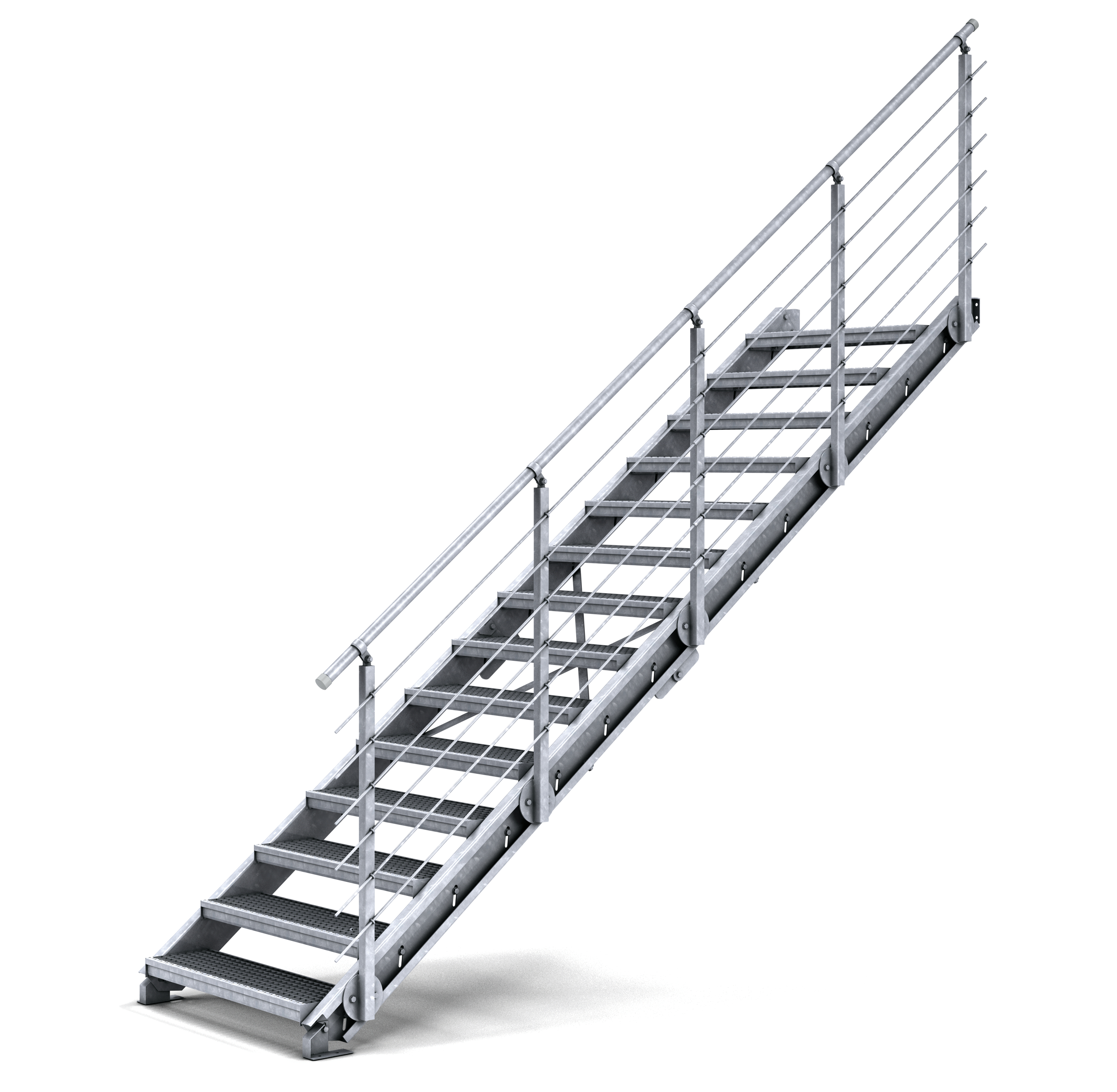 Der Treppenbausatz ist eine Innovation, die Ihnen das Leben in vielerlei Hinsicht einfacher macht. Die stabile Treppe mit geteilten Stahlwangen ermöglicht einen unkomplizierten LKW-Transport und vor Ort einen schnellen Aufbau ohne erneutes Bohren oder Nacharbeiten. Die Treppe ist witterungsbeständig, robust und stabil für viele Einsatzmöglichkeiten im Innen- und Außenbereich und wird mit Stufen geliefert.